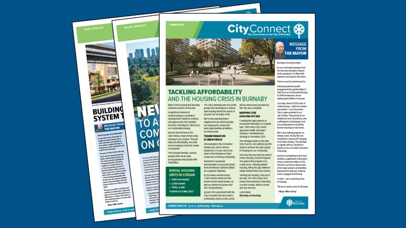 Published twice per year, the CityConnect printed newsletter is distributed to more than 90,000 households in Burnaby.