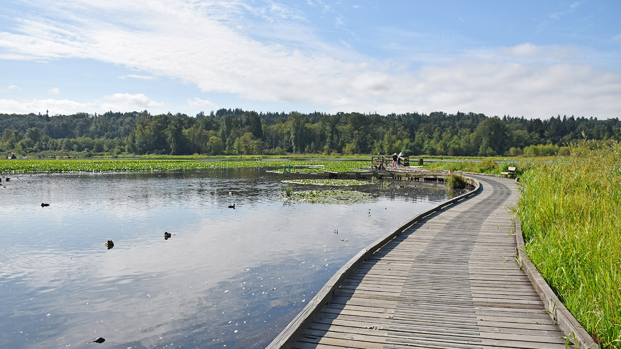 Burnaby Lake Regional Nature Park has wheelchair accessible parking spots and washrooms.