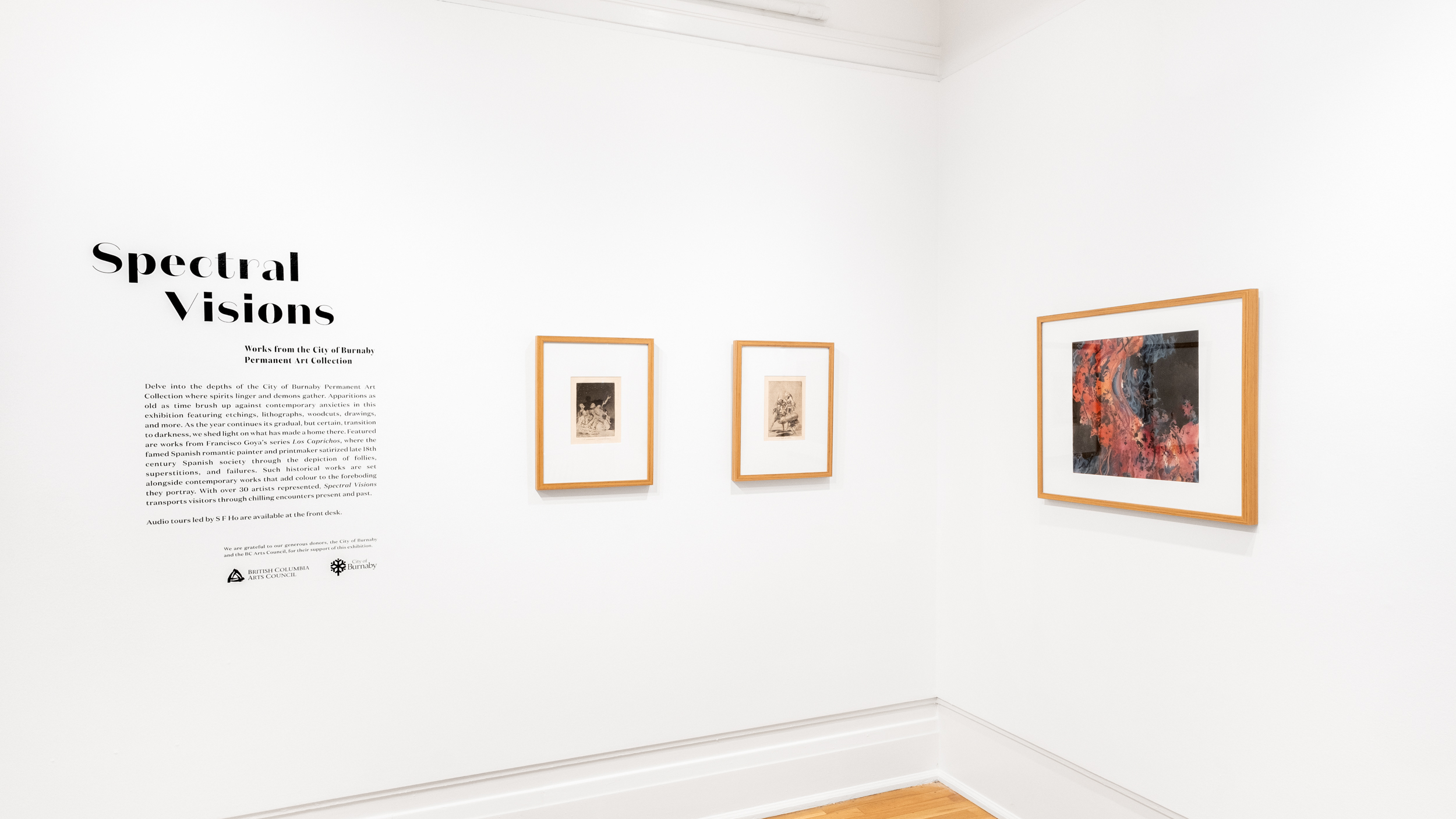 This fall, delve into the depths of the City of Burnaby Permanent Art Collection where spirits linger and demons gather. Apparitions as old as time brush up against contemporary anxieties in this expansive exhibition featuring etchings, lithographs, woodcuts, drawings, and more. As the year continues its gradual, but certain, transition to darkness, we shed light on what has made a home there. Featured are works from Francisco Goya’s series Los Caprichos, where the famed Spanish romantic painter and printmaker satirized late 18th century Spanish society through the depiction of follies, superstitions, and failures. Such historical works are set alongside contemporary works that add colour to the foreboding they portray. Canadian artist Betty Goodwin delicately examines the fragility of human life and the states it traverses in work from her series Le Memoire du Corps. With over 30 artists represented, Spectral Visions will transport visitors through chilling encounters present and past.