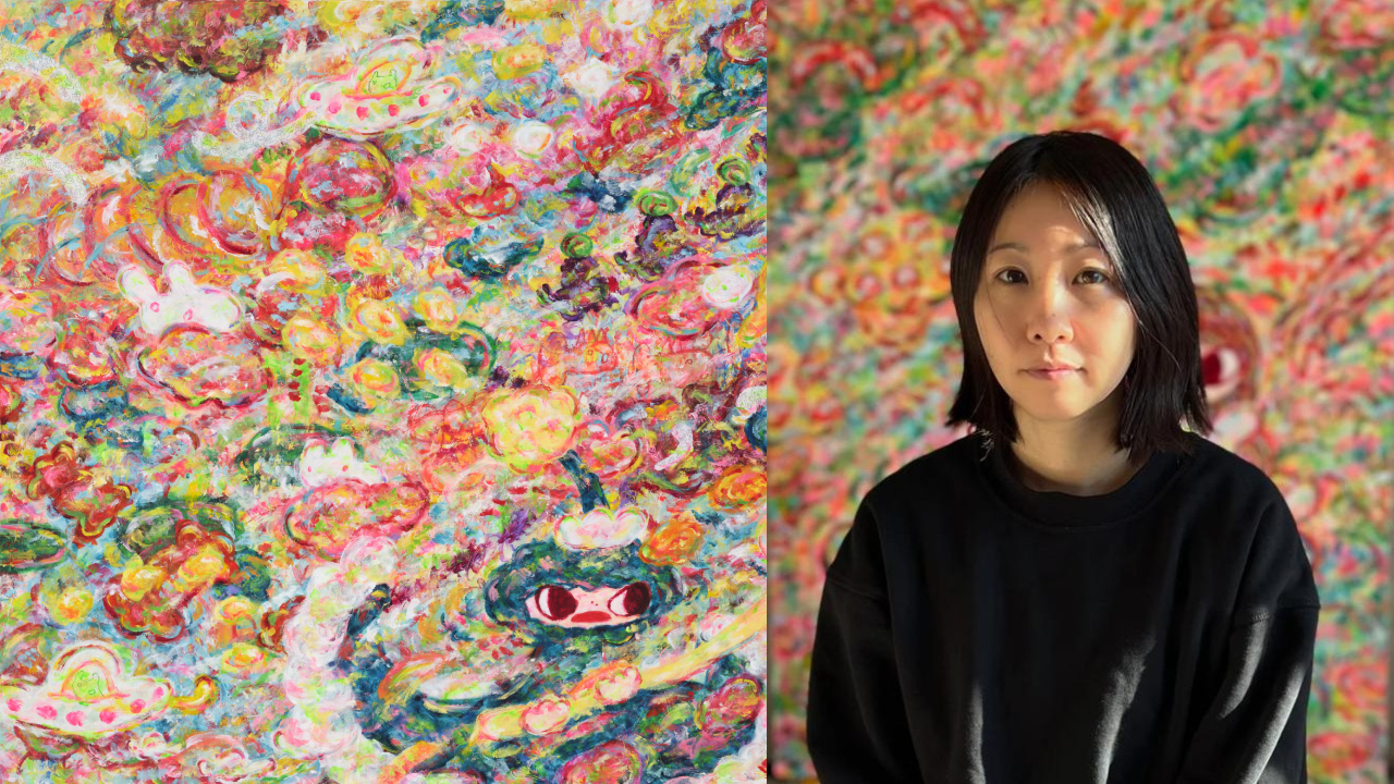 Born in Chiba, Japan, Ayako Rokkaku (@rokkakuayako) lives and works between Berlin, Porto and Tokyo. Her artistic process is instinctive and performative: she applies acrylic paint with her bare hands, translating the movement of her body directly onto the canvas. Rokkaku’s visual language seamlessly shifts between elusive abstract formations and figurative elements, drawing inspiration from the kawaii culture (Japanese for cute) and capturing the boundless imagination of a child. Known for her vibrant canvases filled with fantastical characters and imagined landscapes, Rokkaku often stages live painting performances that highlight her process and foster a direct connection with the audience. She has presented major solo exhibitions at The Long Museum, the Chiba Prefectural Museum of Art, Museum Jan, Danubiana Art Museum and Kunsthal Museum.