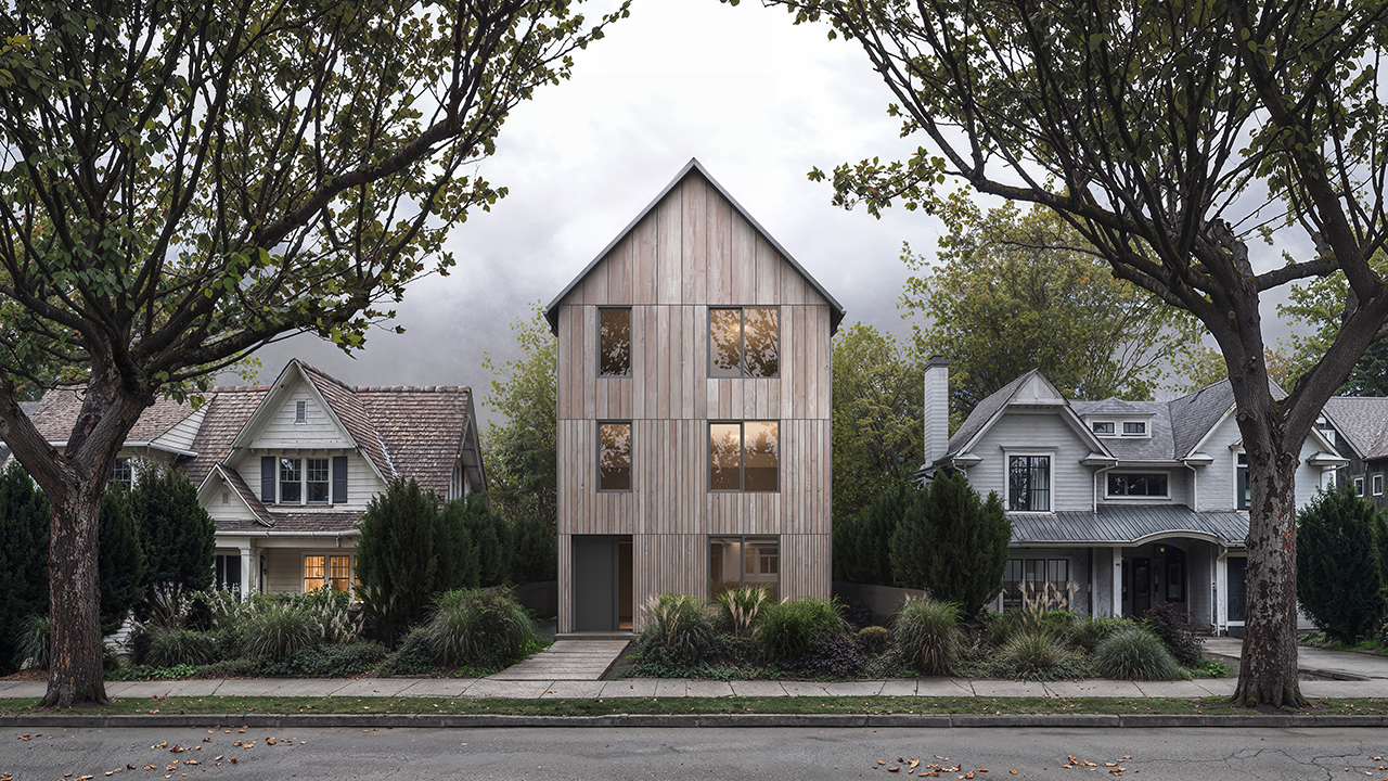 Residential design can be a highly personal endeavour, and this duplex has been designed to be as customizable as possible. The design can be modified to utilize 4 different roof shapes, both for aesthetic preference, and to better reflect site-specific neighbourhood character. The standard wall and roof assemblies are designed to accommodate a variety of cladding materials that are aesthetically unique and allow developers and owners to prioritise budget, maintenance, combustibility, and durability as they see fit. The Buyers Guide illustrates some of the potential cladding options, and builders may choose any exterior finish that can be installed within the ¾” cladding allowance in the wall assembly, including vinyl or heat-treated wood.