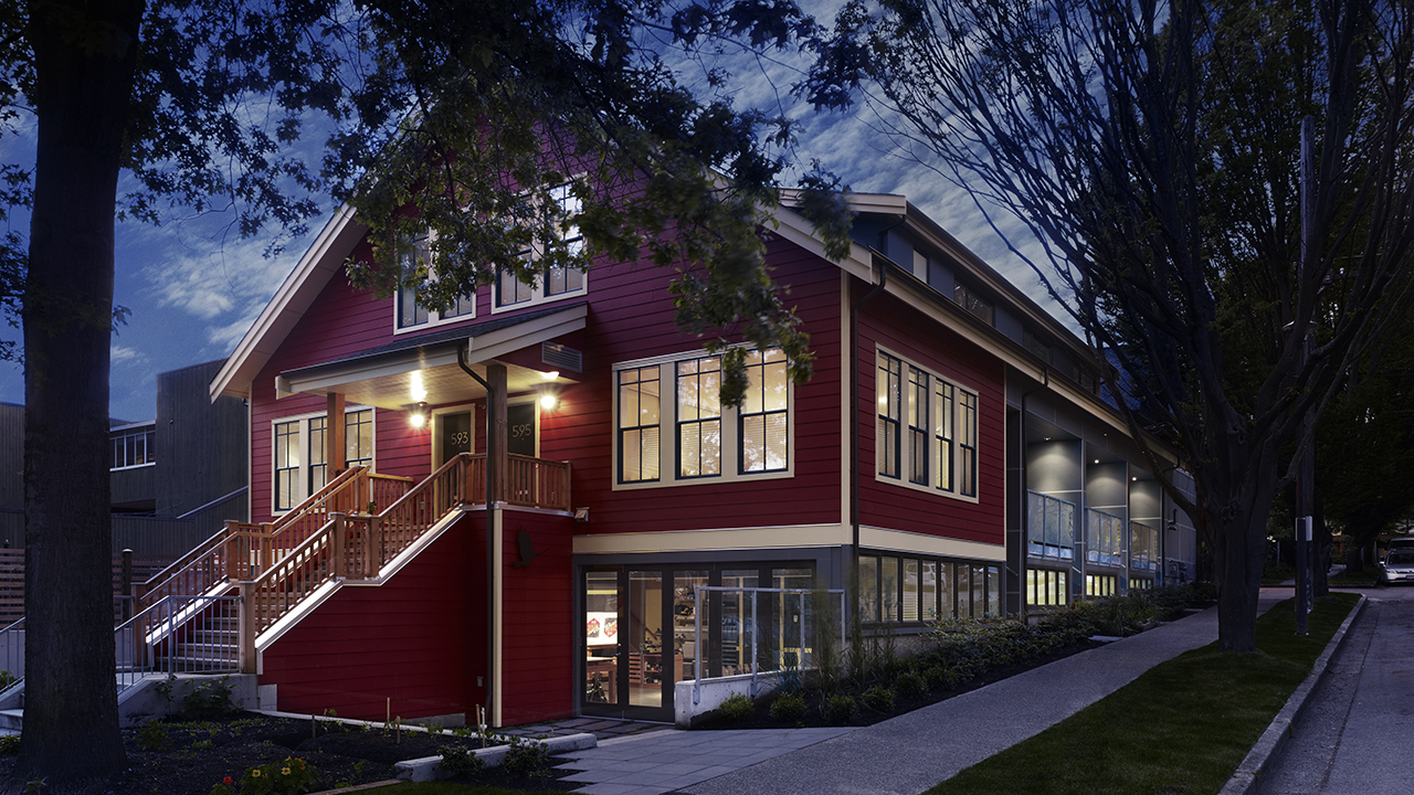 The Five X Flex was the first Built Green Platinum project in British Columbia. The original building incorporates a wide range of advanced sustainability initiatives, including geothermal energy, which is rare for this type of site. The Five X Flex also incorporates, and could incorporate in Burnaby, advanced solar hot water heating systems. However, since the design of the Five X Flex, we have become proponents of high-performance building envelopes rather than relying solely on technological solutions for green building. This strategy requires lower maintenance, and “bakes in” energy efficiency rather than relying on technology that can easily go obsolete.